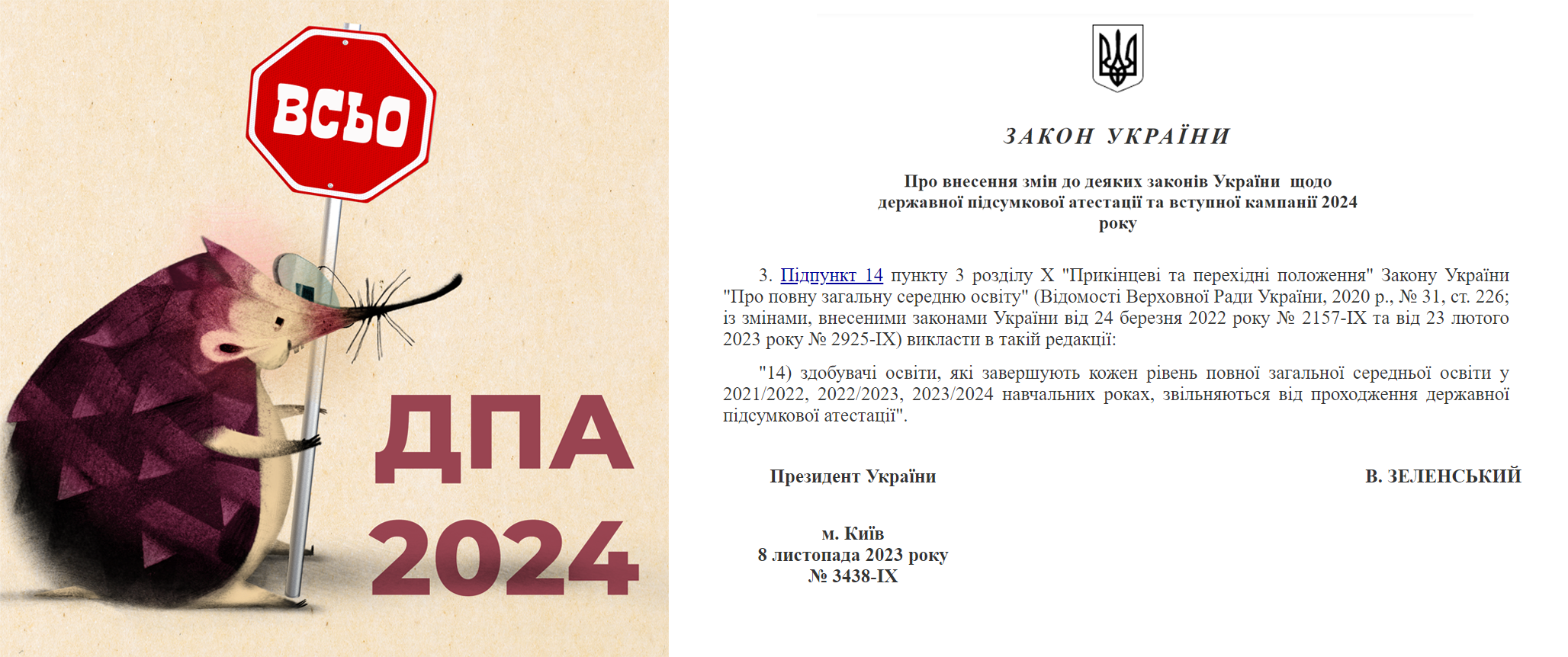 Оголошення 15.11.2023 ДПА-2024 для учнів 4-х і 9-х класів скасовано Підписано Закон України «Про внесення змін до деяких законів України щодо державної підсумкової атестації та вступної кампанії 2024 року». Comments are closed.