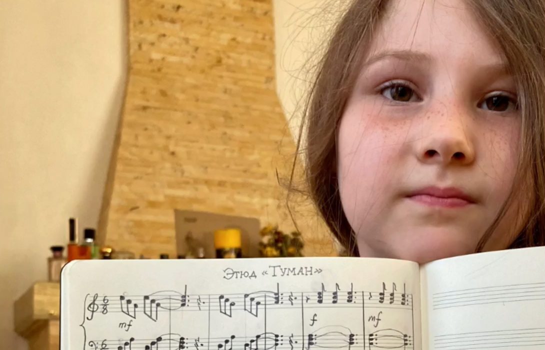 «Мне семь лет. Примерно с пяти лет я начала заниматься музыкой — игрой на фортепиано. Вдобавок я люблю сочинять свою музыку. В данном случае я хотела сочинить этюд, упражнение для пальцев. Но у этого этюда есть название — „Туман“, которое, как мне кажется, передает всю его суть. Моя учительница помогает мне разобраться, как записывать нотами сочинения, благодаря чему у меня это и получилось!»